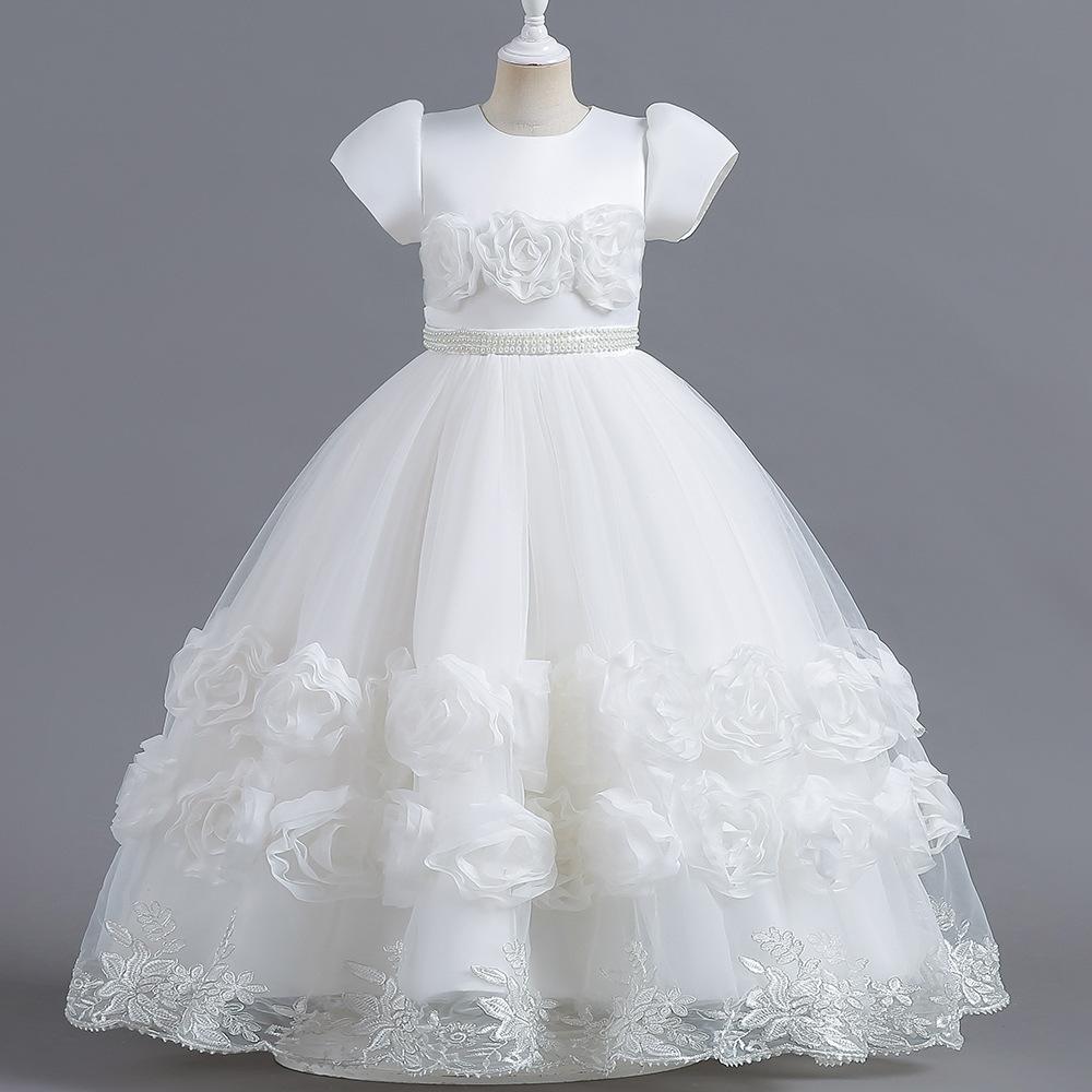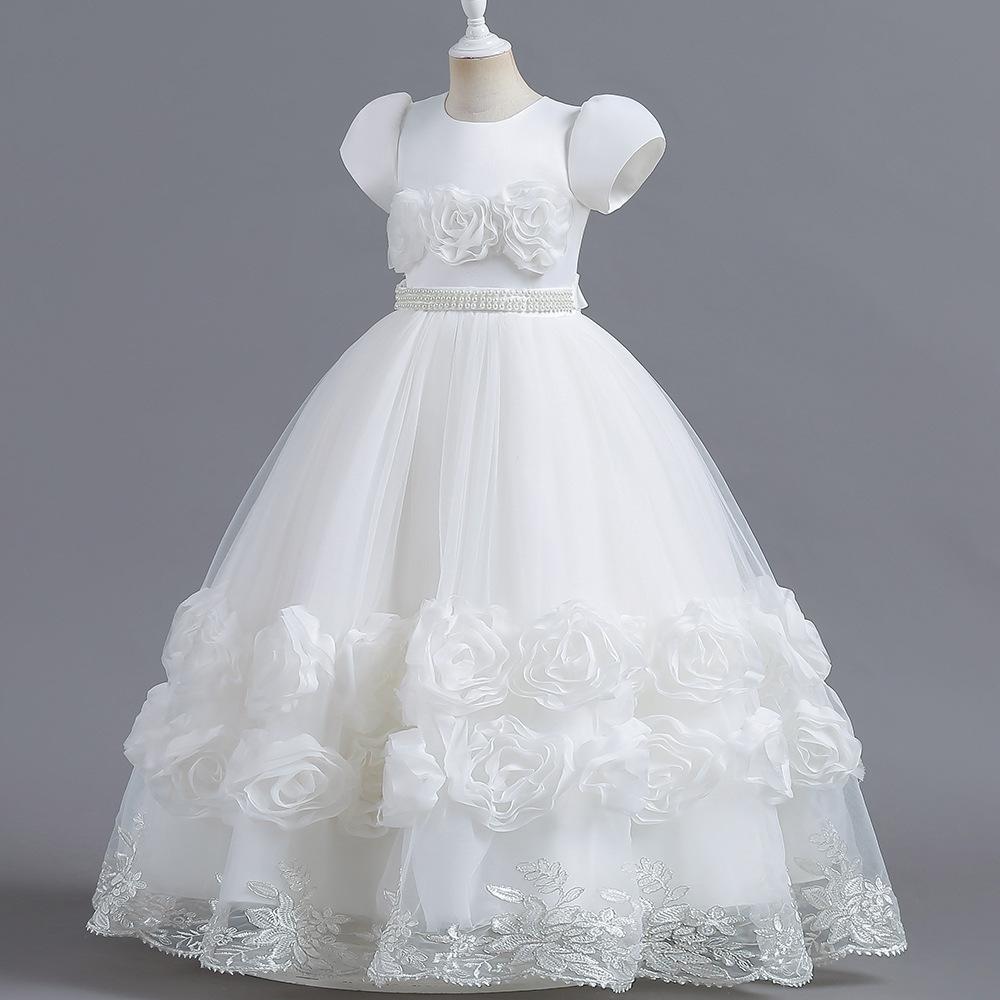 Платья для девочек Свадебная вечеринка Элегантное белое платье подружки невесты Принцесса Детское платье для девочки Выпускной Рождество Вечернее платье