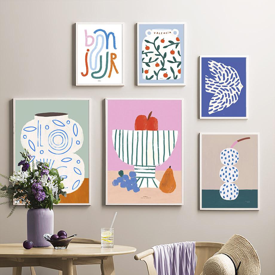 Минималистичная ваза для цветов, чаша, фрукты, птица, абстрактные постеры в стиле бохо и принты, настенное искусство, холст, живопись, картины для декора гостиной