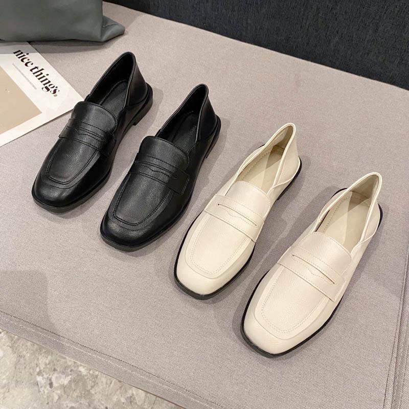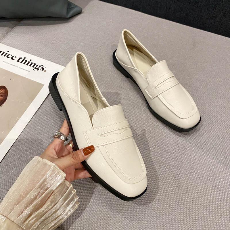 Женские туфли-лодочки на толстом каблуке, новинка 2025 года, весна-лето, квадратный носок, средний каблук, британский стиль, маленькие кожаные туфли, туфли-дутики, лоферы на одном педале