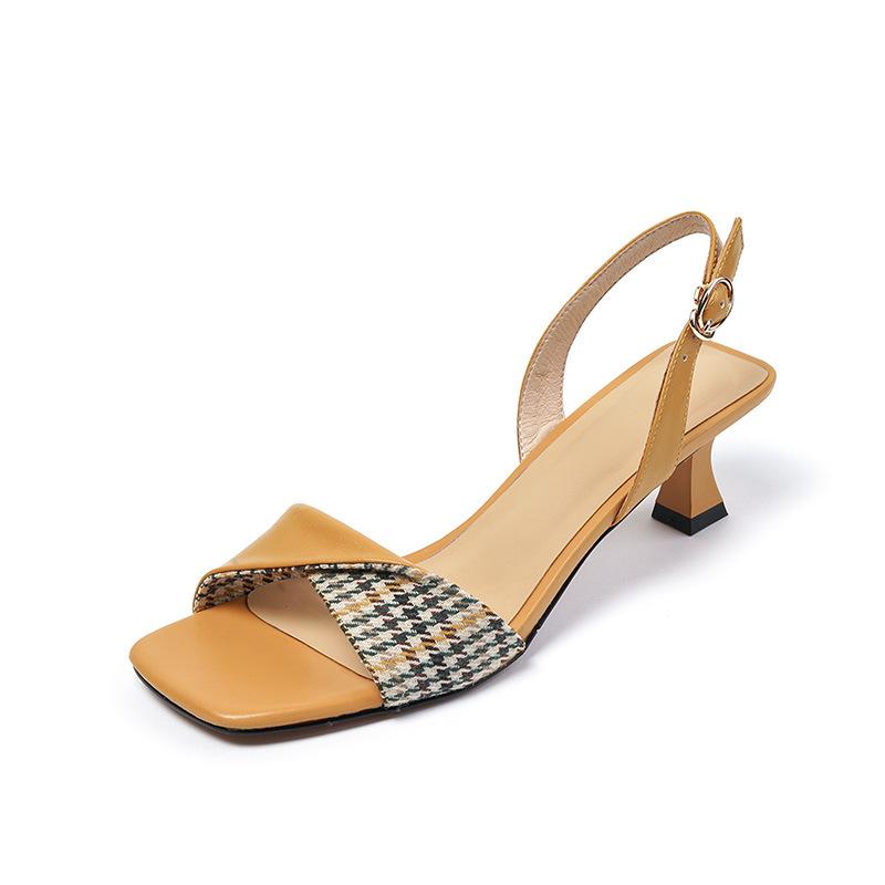 Сандалии 2025 года, женская летняя верхняя одежда, низкий каблук, квадратный каблук, женские сандалии, средний каблук, универсальные, тонкий каблук, французская женская обувь