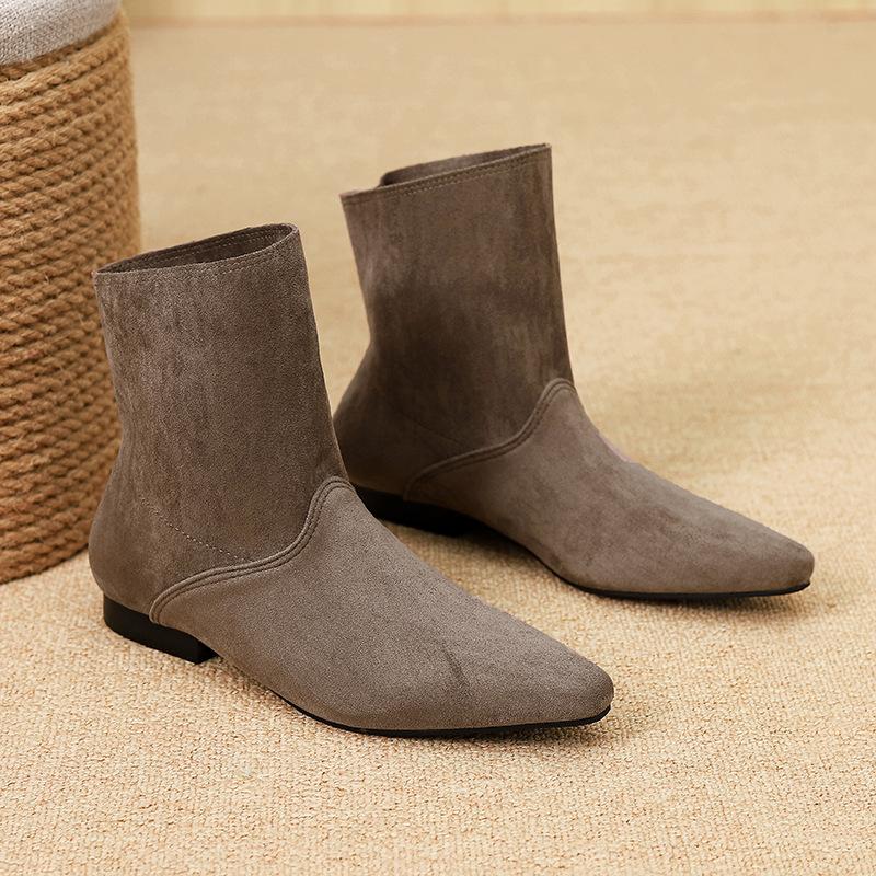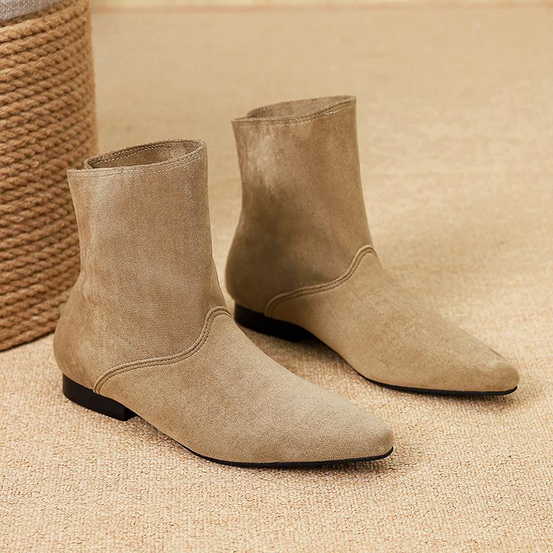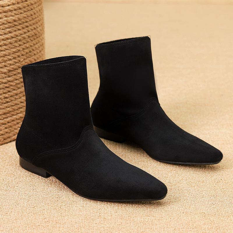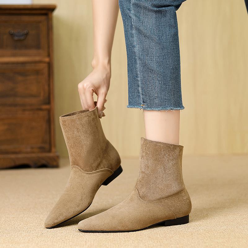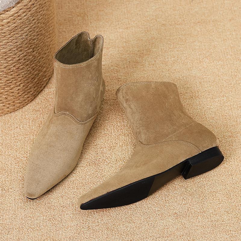 Специальные ретро ковбойские сапоги на толстом каблуке с острым носком женская обувь 2025 кожаные короткие сапоги весенне-осенние одинарные сапоги 881-1