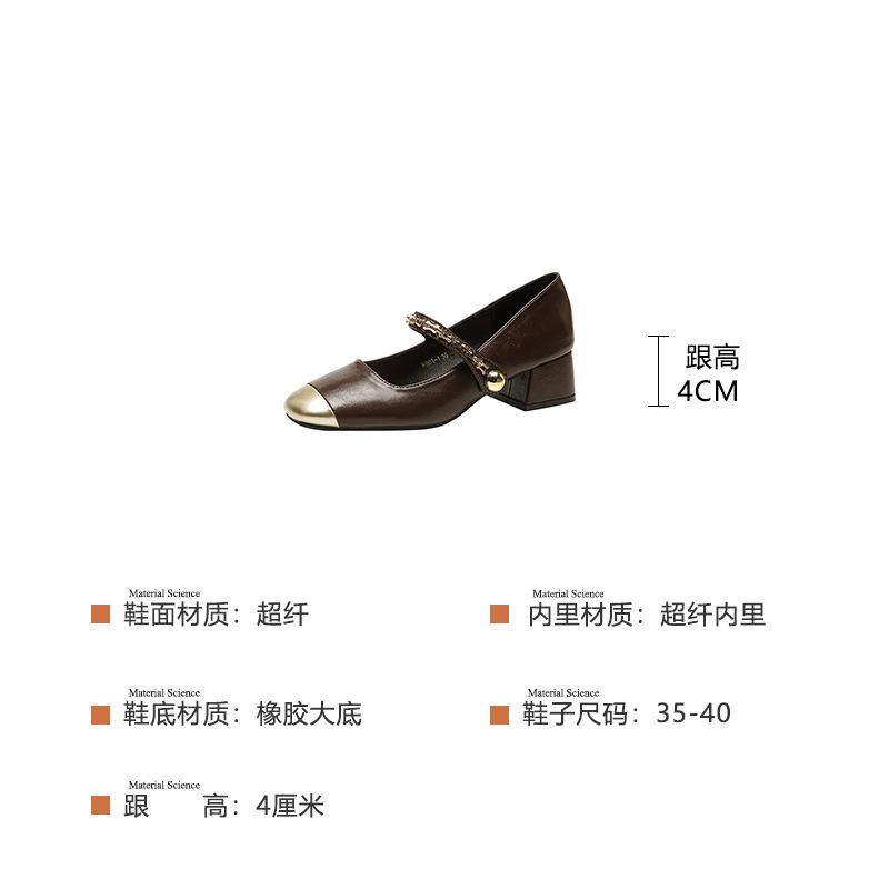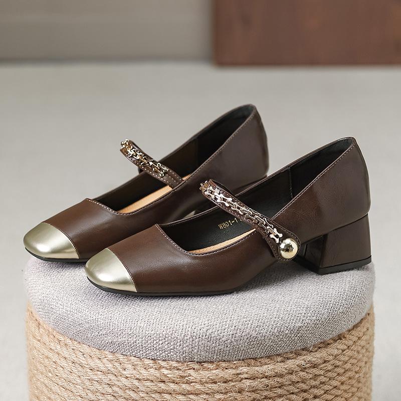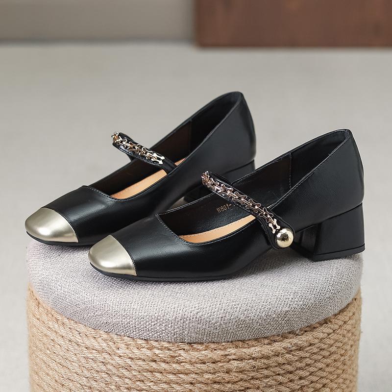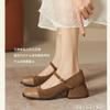 Color matching small square head single shoes women's shoes versatile thick heel shoes light mouth Mary Jane shoes one-word buckle new leather shoes