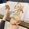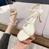 Босоножки на высоком каблуке с перекрестными ремешками женские 2025 новые квадратный носок тонкий каблук высокий каблук сказочный стиль с открытым носком на высоком каблуке