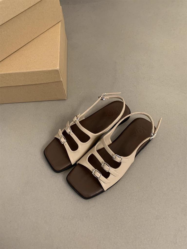 Модные сандалии для женщин лето 2025 новые ретро французский сказочный стиль пляжная пляжная мода мягкая плоская римская обувь