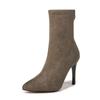 Полусапожки Эластичные сапоги Заостренный носок Тонкий каблук Черные Ботильоны Стрейч-ткань Зимние Сапоги на высоком каблуке Рим