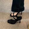 Лето 2025 Новый стиль интернет-знаменитости с юбкой, Босоножки на высоком каблуке Женская мода Серебристые Черные Шлепанцы на одно слово