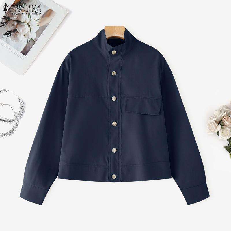 ZANZEA Женская повседневная блузка с воротником-стойкой и длинным рукавом — купить товар онлайн с бесплатной доставкой по всему миру!