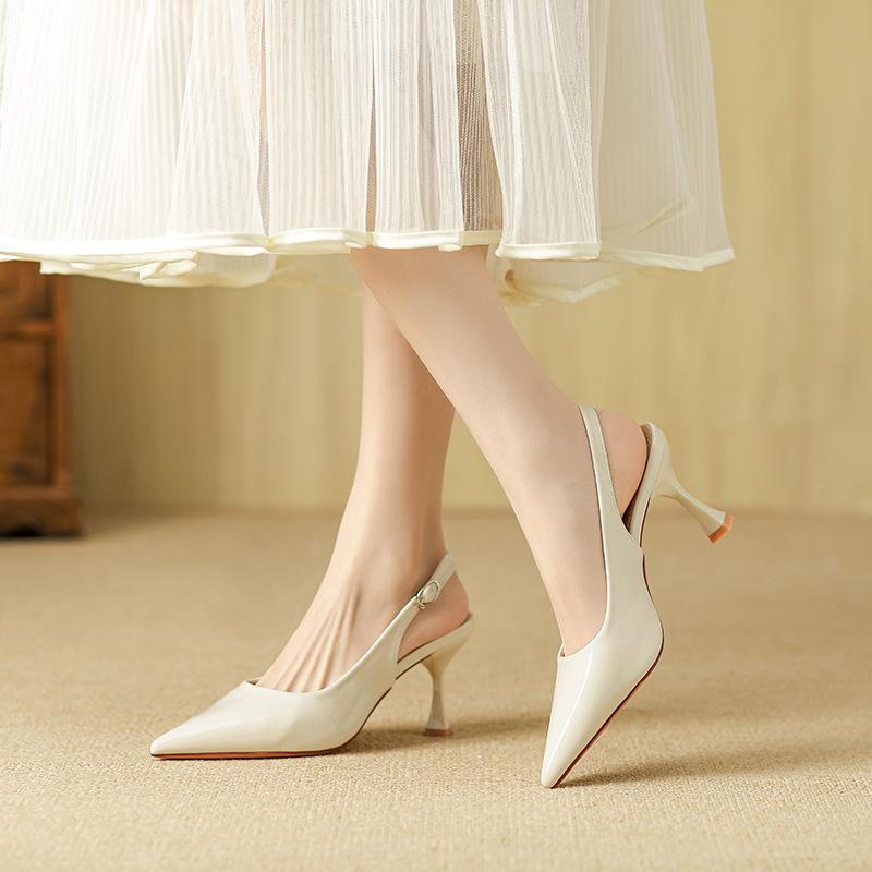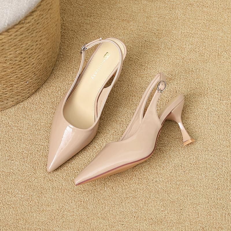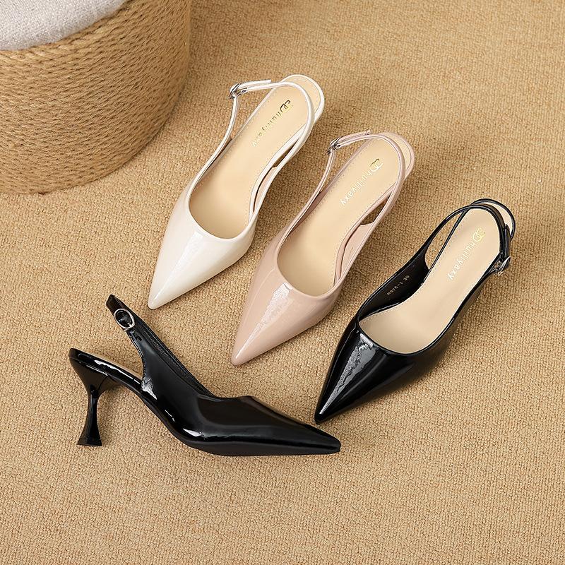 2025 новая весна и осень темперамент высокие каблуки французский тонкий каблук острый носок слово красивая сумка голова сандалии телесные женские туфли