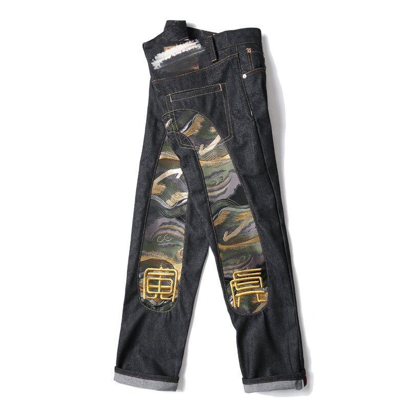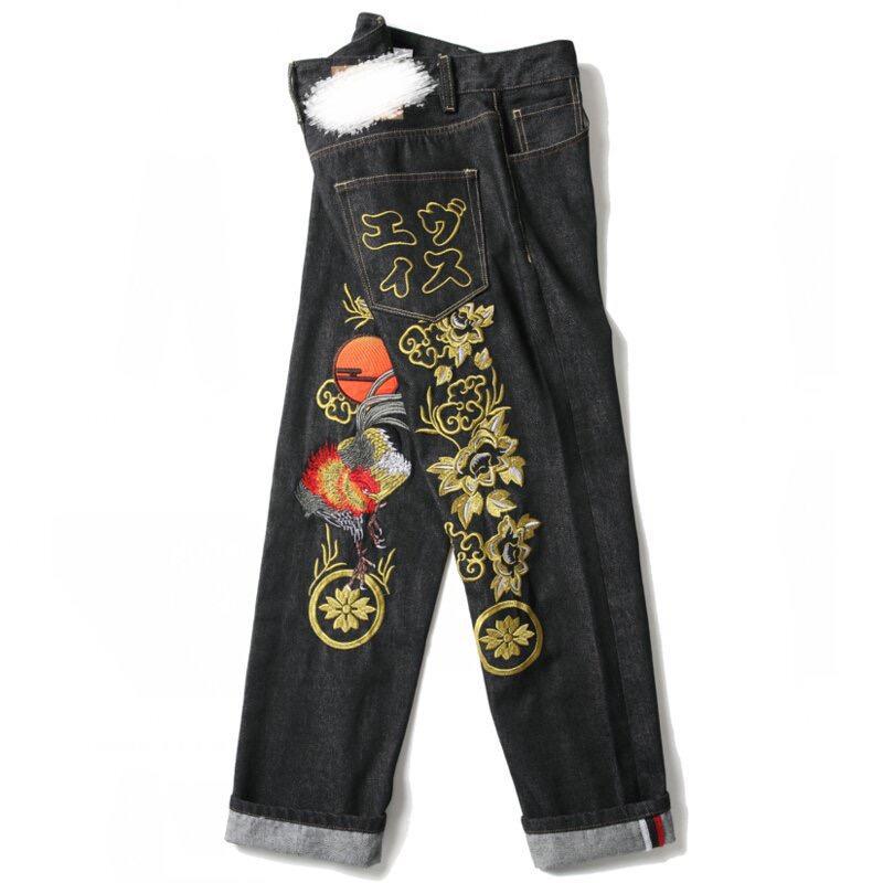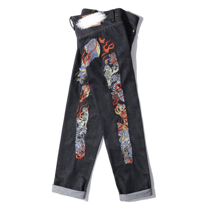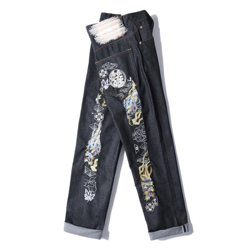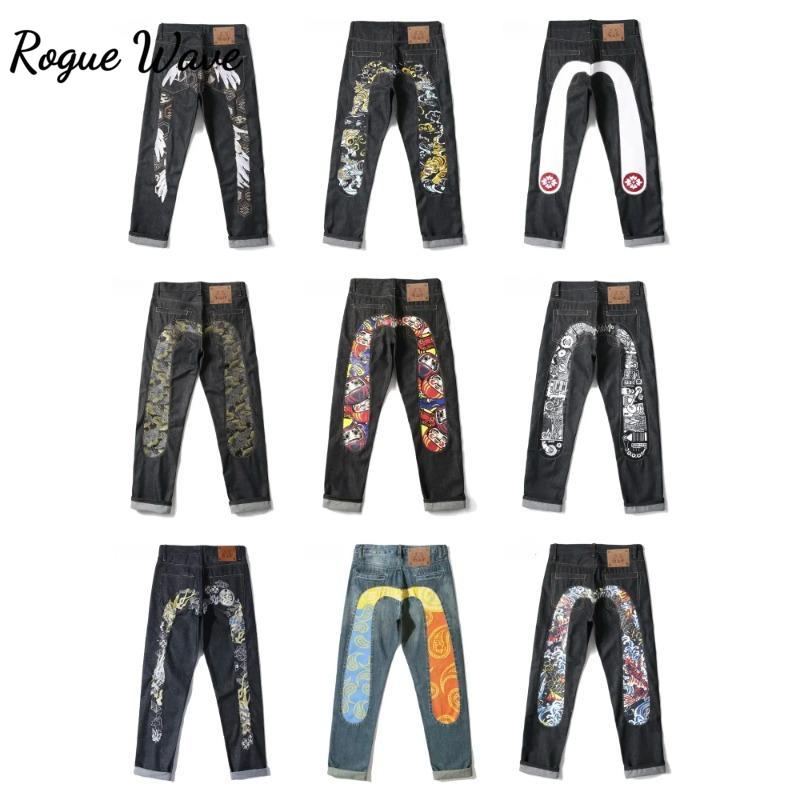 RogueWave Новые Японские Хипстерские Ретро Хип-хоп Модные Джинсы с Принтом Уличный Стиль Повседневные Зауженные Прямые Вышивка Y2k Принт Отстрочка Брюки