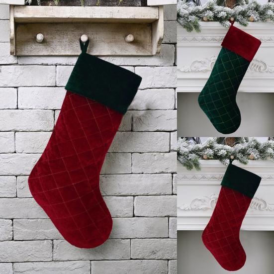 1 шт. Рождественский чулок в клетку, красно-зеленый, фланелевый, с тонкой текстурой, подарочный мешок, домашний декор