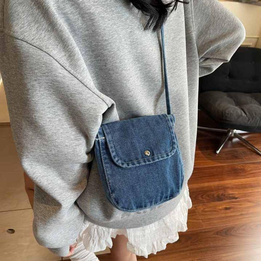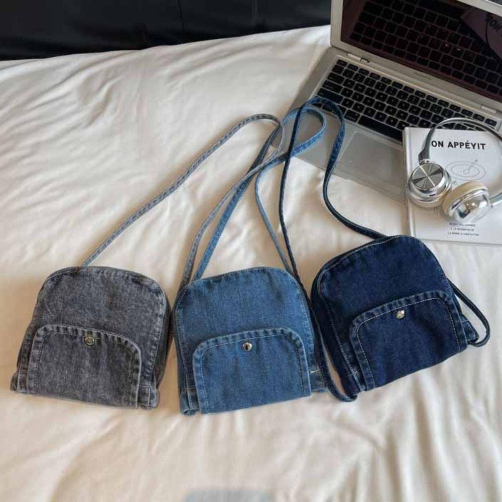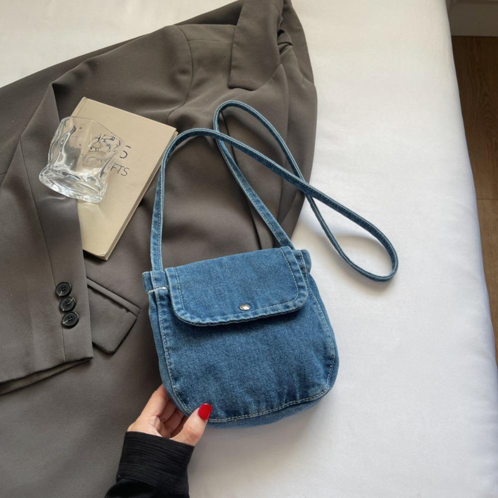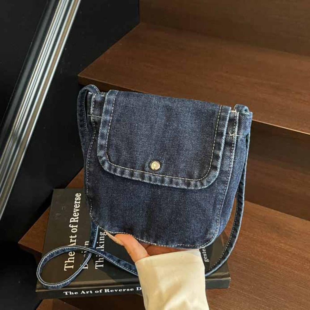 Уличный стиль Джинсовая холщовая сумка Y2K Однотонная сумка кроссбоди Повседневная винтажная сумка-тоут Для улицы