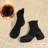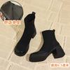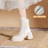 Осень и зима новая корейская маленькая короткая обувь женская толстый каблук тонкие ботинки круглый носок супермягкая толстая подошва белые короткие ботинки