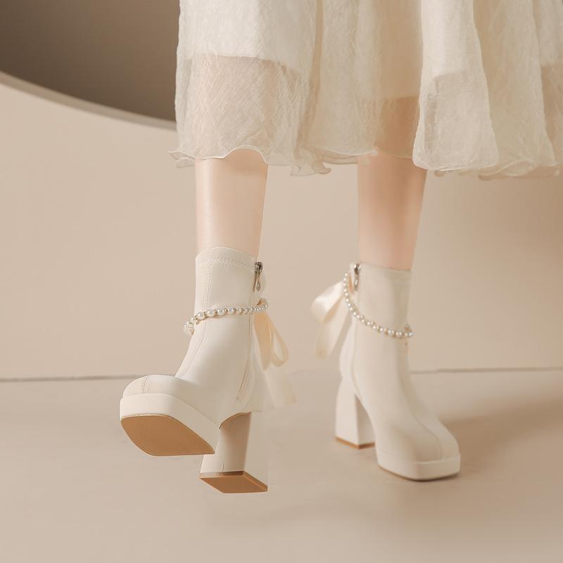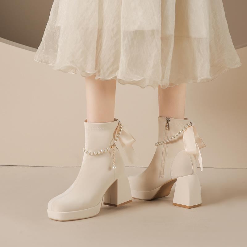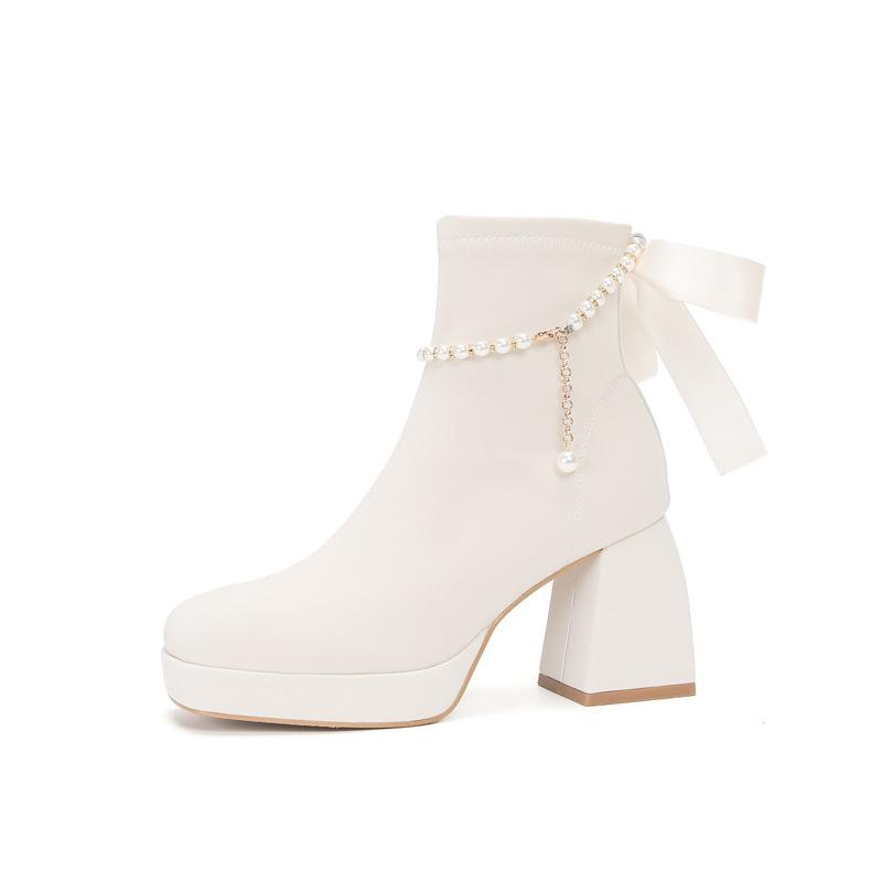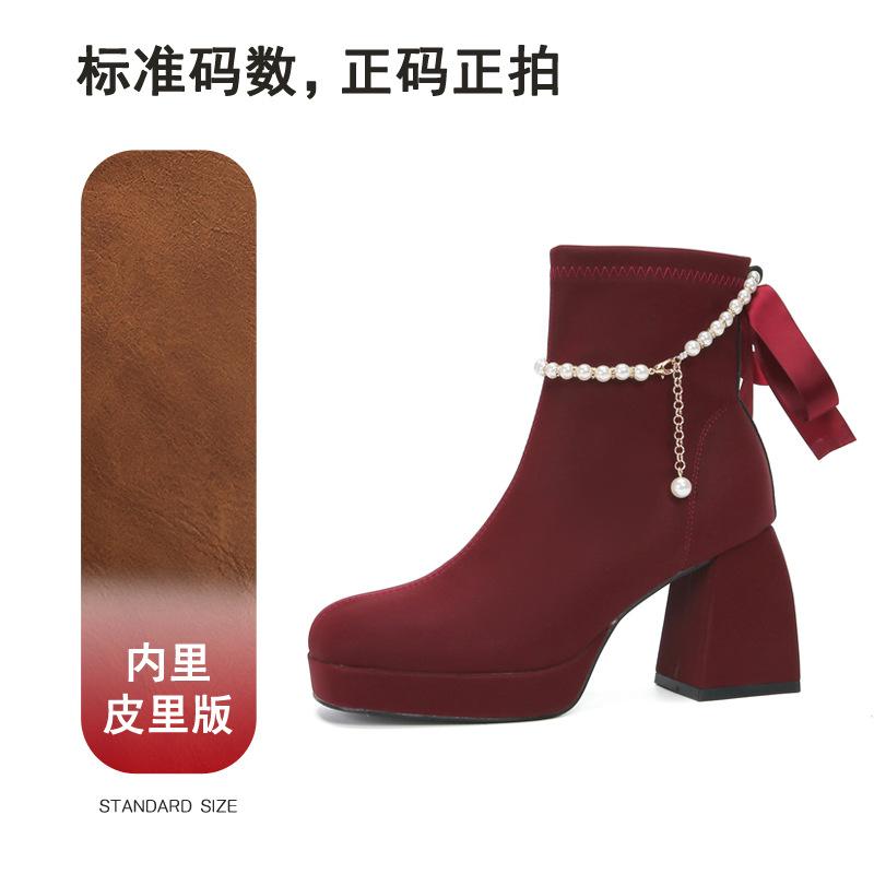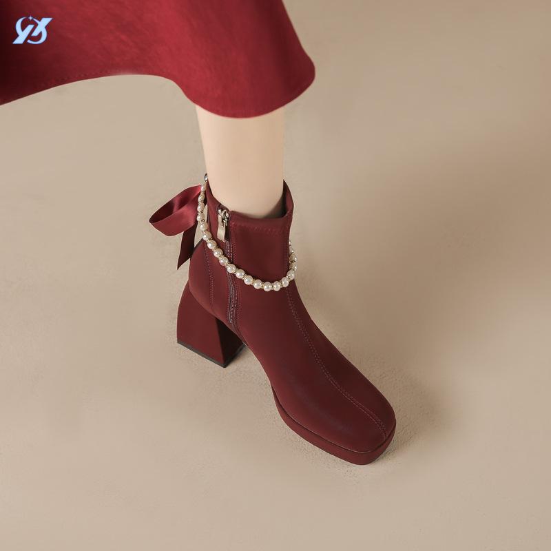 Jin Gang MY толстый каблук квадратный носок челси новая осень и зима бордовый водонепроницаемый стол короткий женский