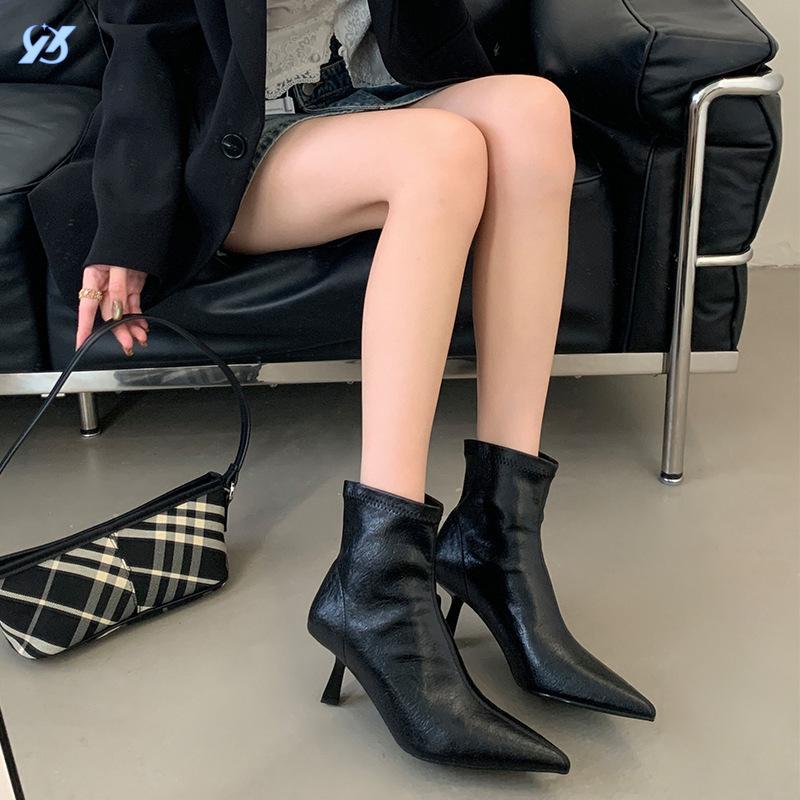 Французский темперамент острый носок тонкий каблук высокий каблук короткие ботинки женские весна и осень высокое чувство моды модная сила тонкие ботинки