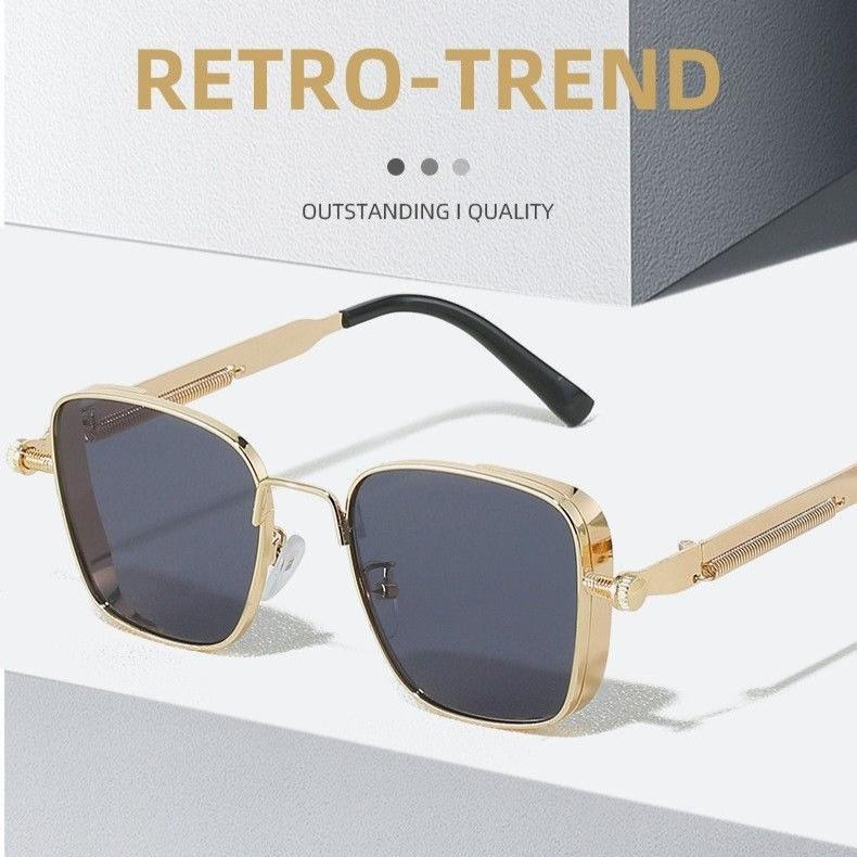 Мужские солнцезащитные очки для вождения Винтажные стимпанк квадратные солнцезащитные очки Металлическая оправа с пружинными петлями Женские очки Модные очки для водителя