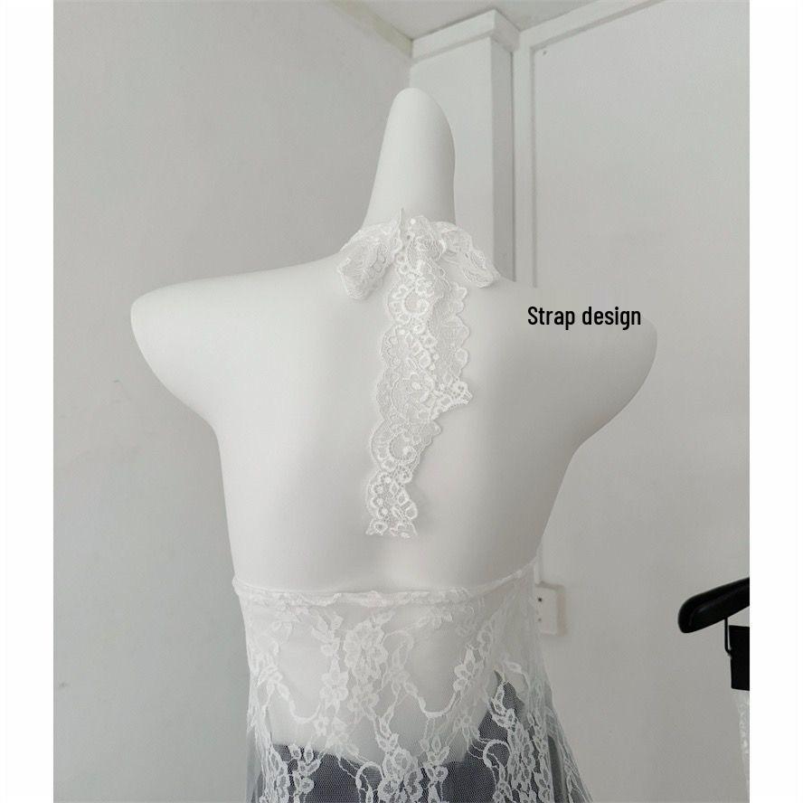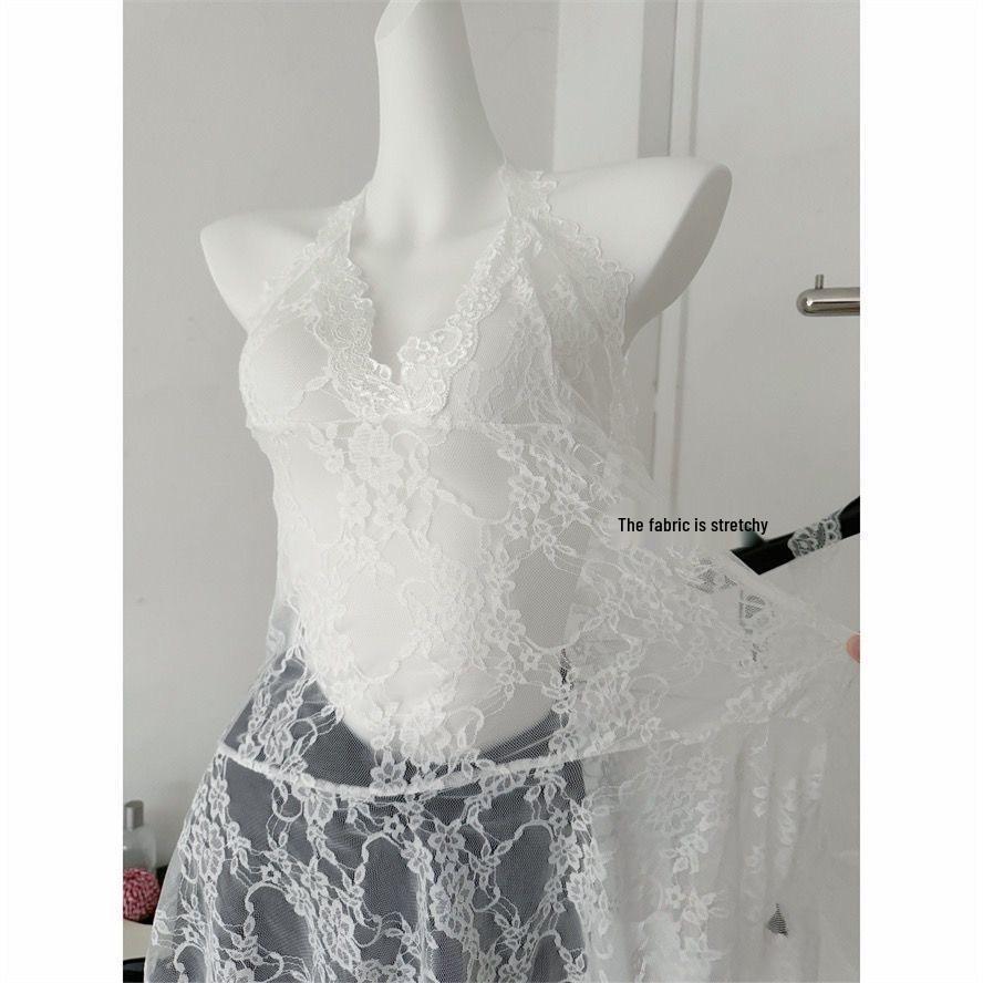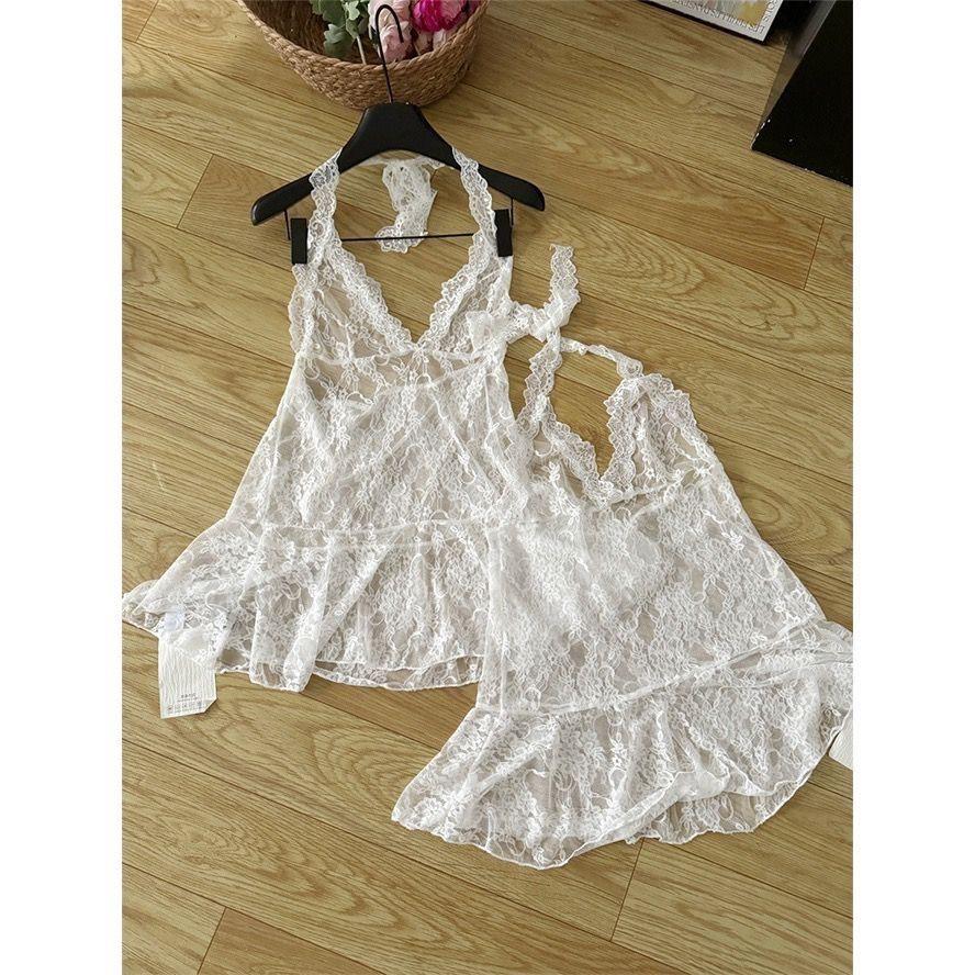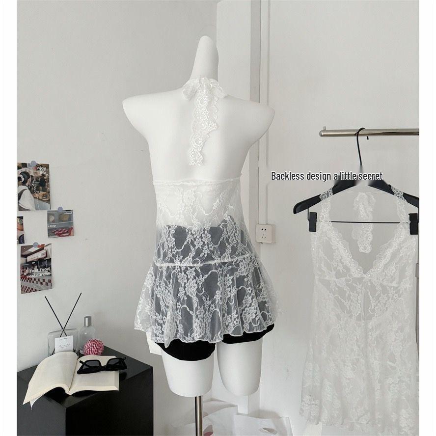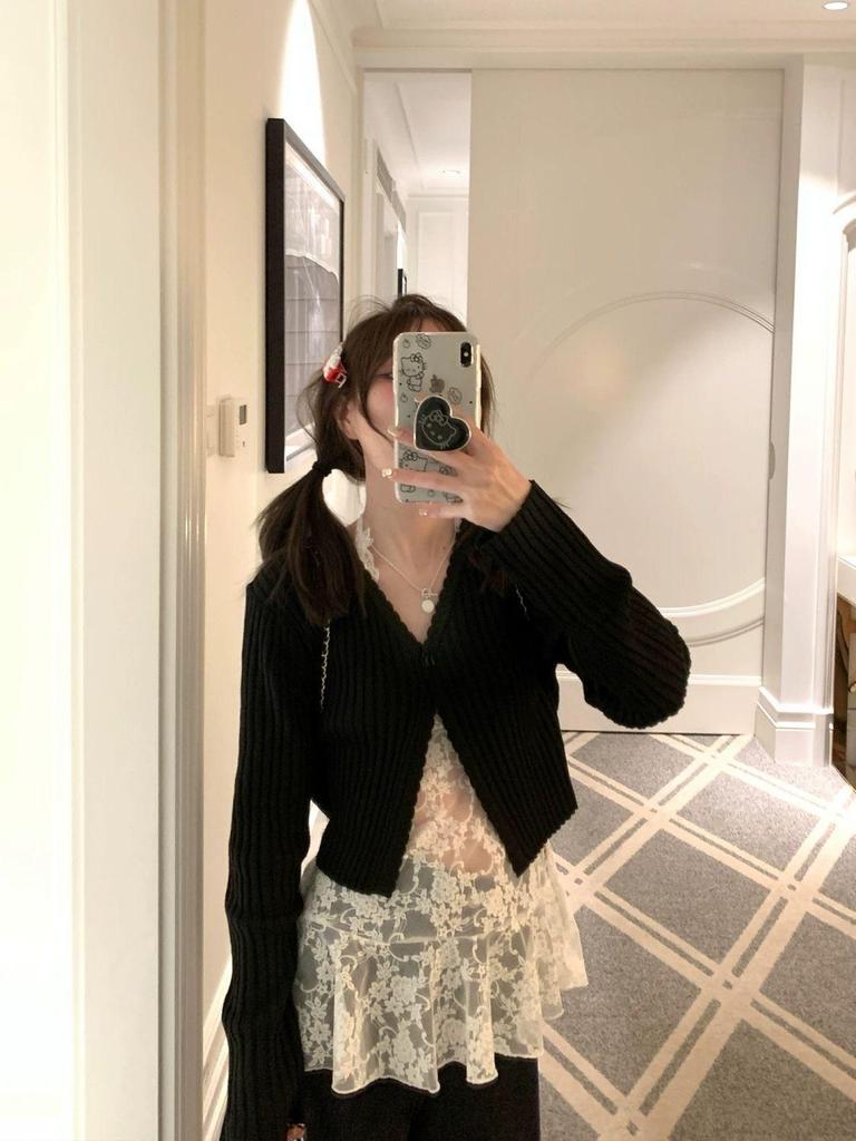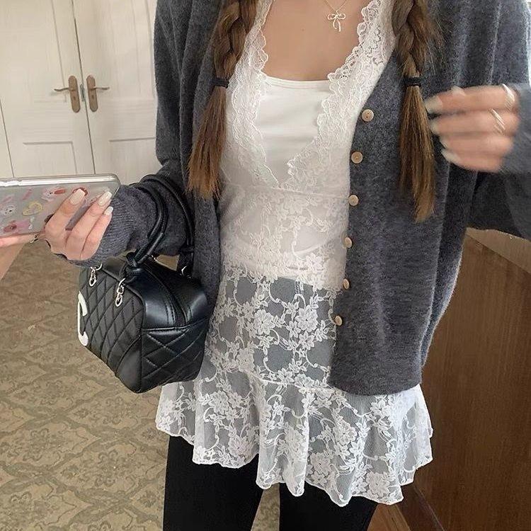 2024 Ранняя осень Белое кружевное женское халтер-топ с V-образным вырезом, внутренним слоем и верхним слоем-кардиганом в виде безрукавного жилета.