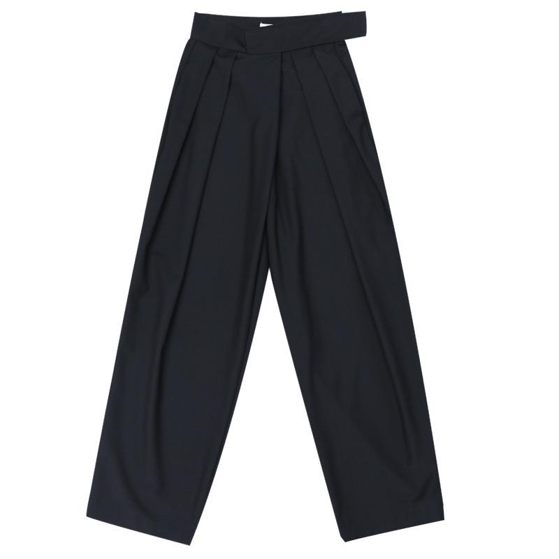 Мужские черные брюки от костюма в стиле Ямамото широкого кроя: Элегантный драпирующийся дизайн для весны и осени