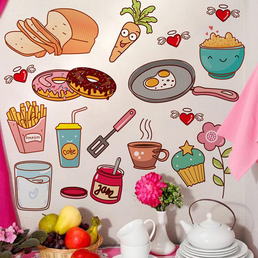 Мультяшный Водонепроницаемый Домашний Декор Самоклеящийся Кухонный Декор Наклейка на Стену Пищевой Узор KTY