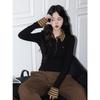 Женский осенний приталенный топ в клетку, имитация двойки, с длинным рукавом и воротником поло