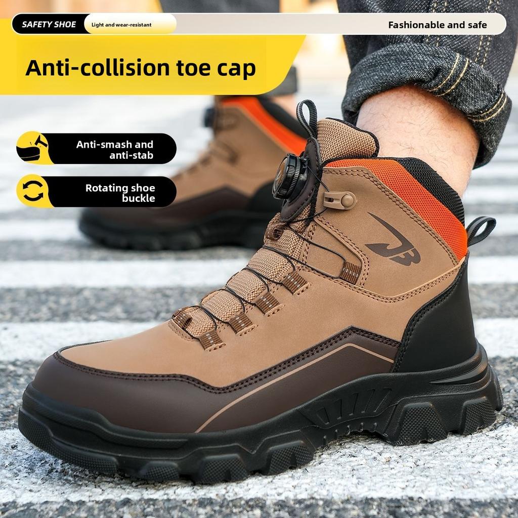 Steel Toe Safety Boots Rotating Button Men Shoes Protection Waterproof Breathable Work Shoes for Men Anti Wear-resistant Static