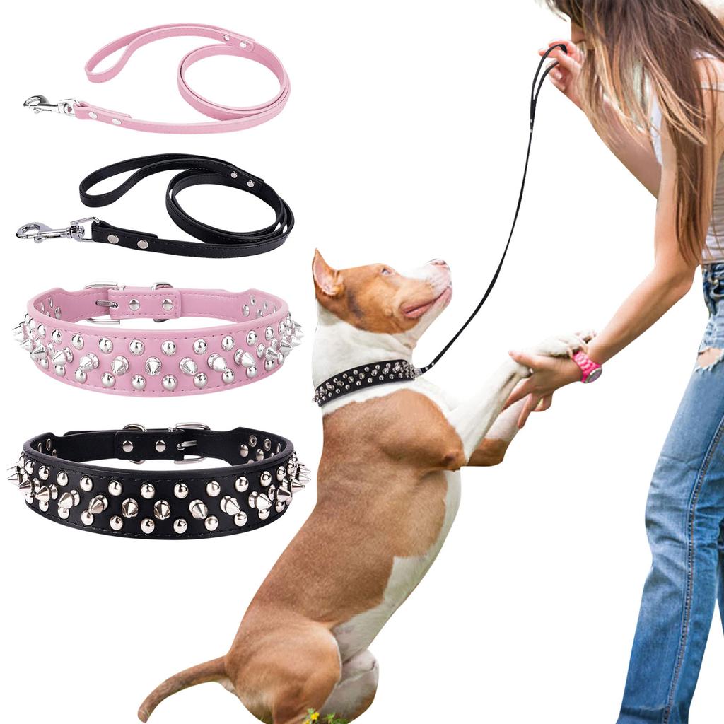 Ошейник для собак с поводком, ошейники из искусственной кожи для быков, с заклепками для маленьких, средних и больших собак