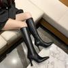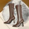 Женские высокие сапоги, модные, с острым носком, элегантные, с квадратным каблуком, длинные сапоги, короткие, плюшевые, женские, с квадратным носком, высокие, эластичные сапоги