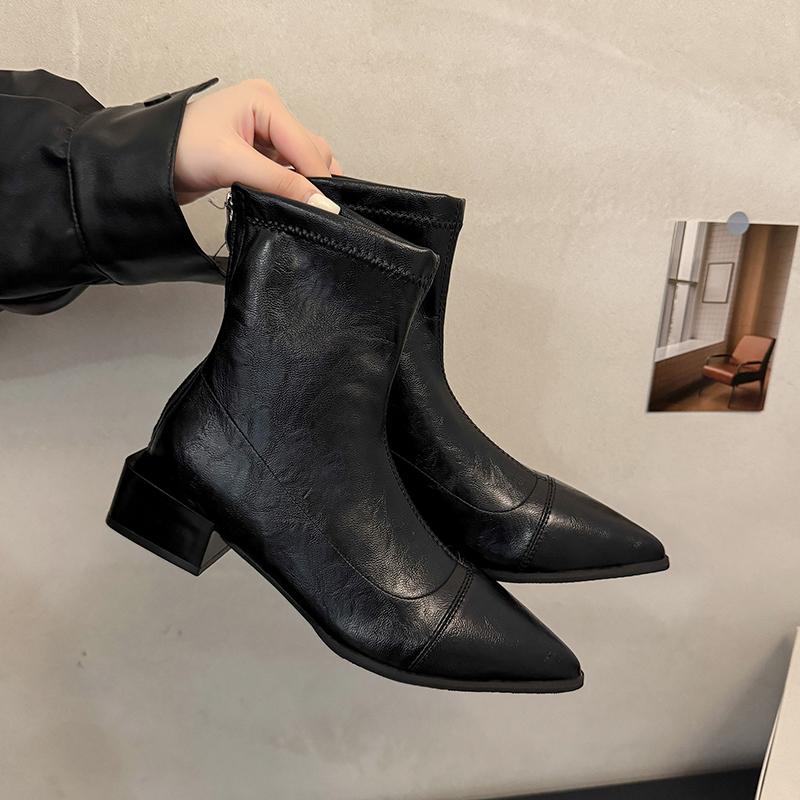 Новая женская мода Универсальные женские ретро ботинки Ботильоны Женские высокий каблук Толстый каблук Острый носок Элегантные Минималистичные Короткие ботинки