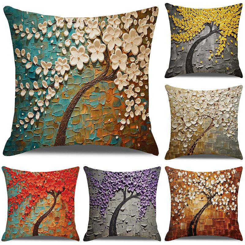 Скандинавская Домашняя Мебель Масляная Живопись Дерево Наволочка Мультяшная Подушка Лен Чехол для Подушки Дивана Новое Домашнее Убранство