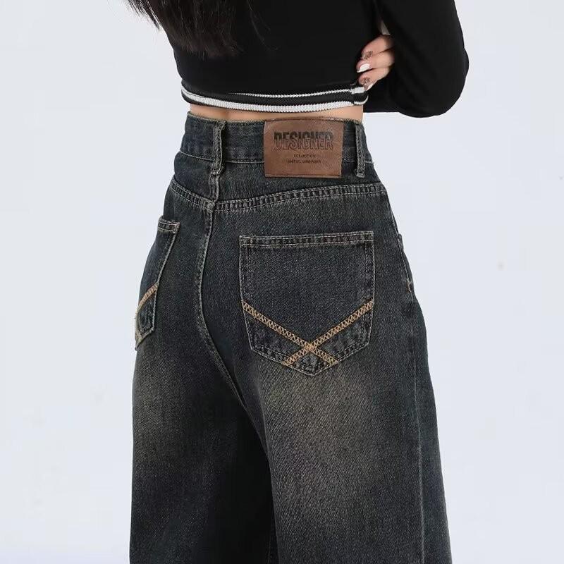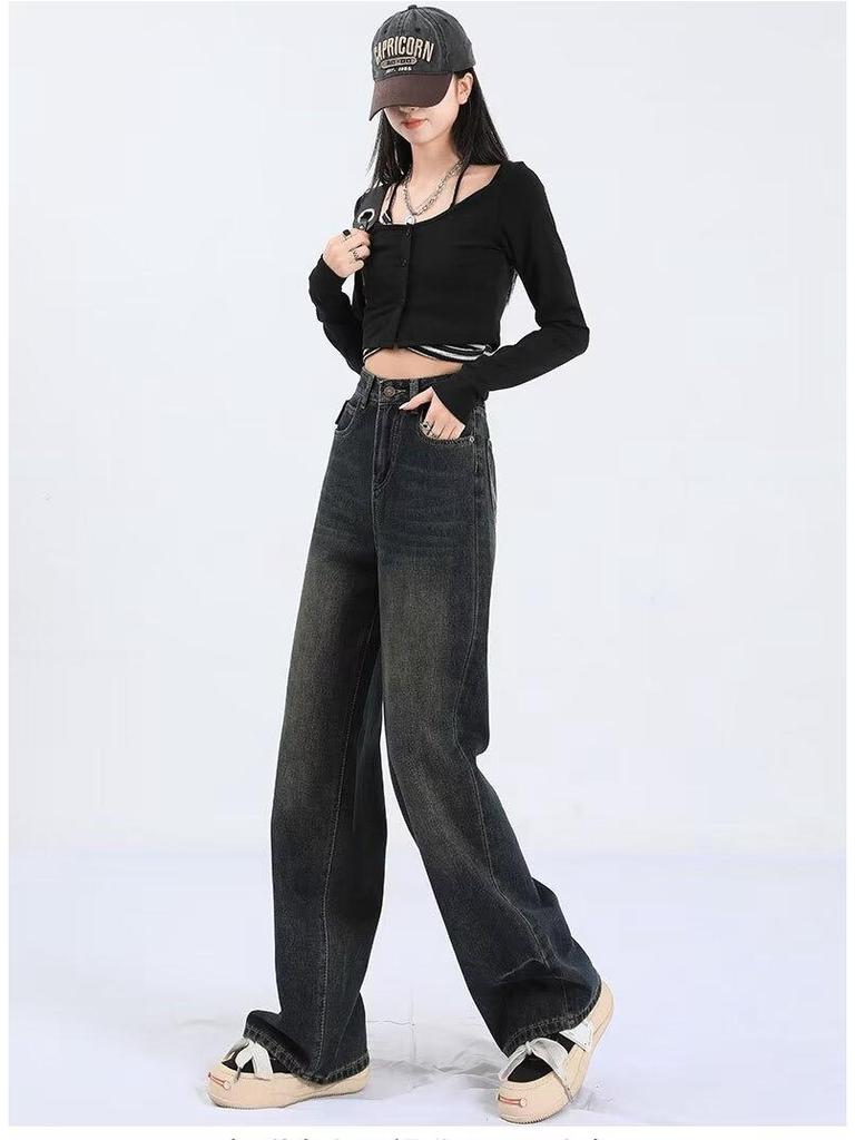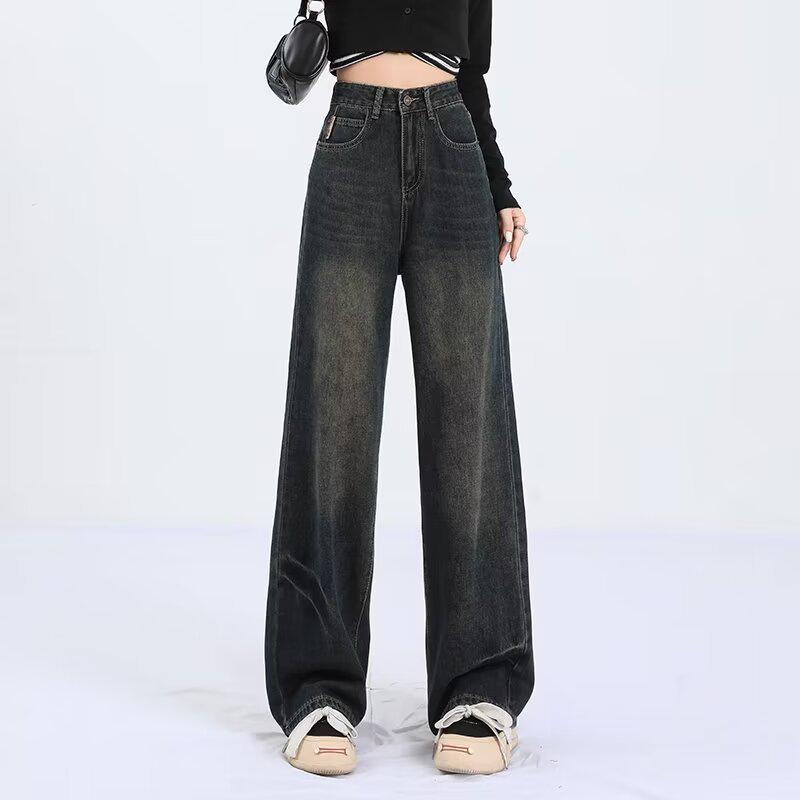 Весенне-осенние ретро женские джинсы с высокой талией и широкими штанинами - винтажные прямые брюки в стиле Гонконга