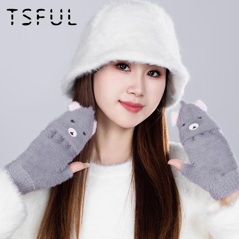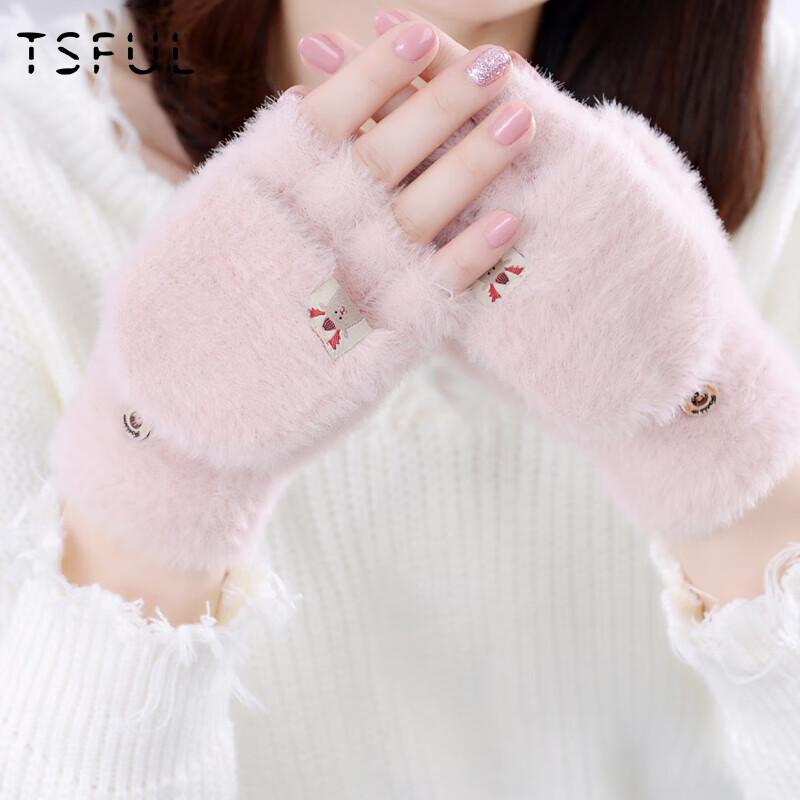 TSFUL Женские зимние плюшевые варежки-митенки с откидным верхом