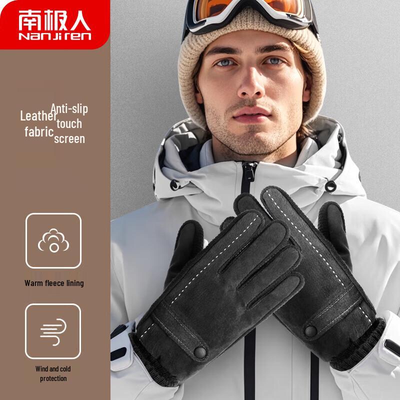 Мужские зимние теплые кожаные перчатки Nanjiren с сенсорным экраном