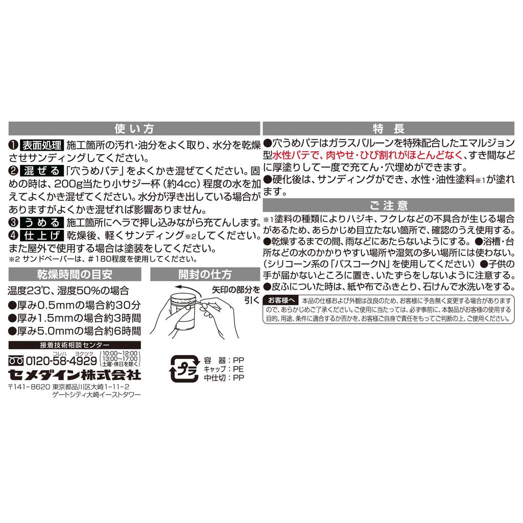 CEMEDINE Шпатлевка для заделки отверстий для внутренних и наружных работ, упаковка из 6 штук, шпатель, белая, 200 г, HJ-111,