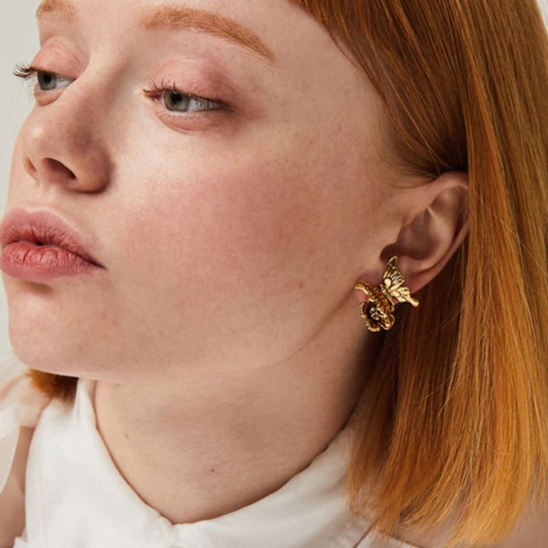 FEVERISH Butterfly & Flower Stud Earrings — купить товар онлайн с бесплатной доставкой по всему миру!