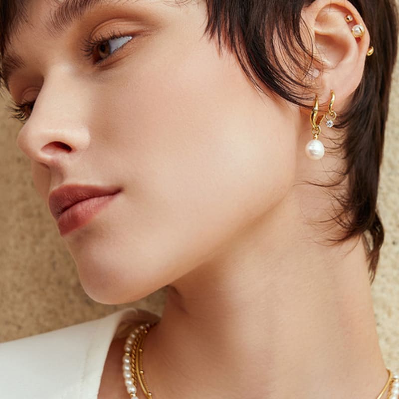 ANIA HAIE Natural Freshwater Pearl Drop Hoop 925 Silver Earrings E058-05G