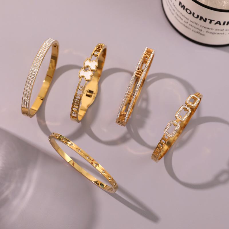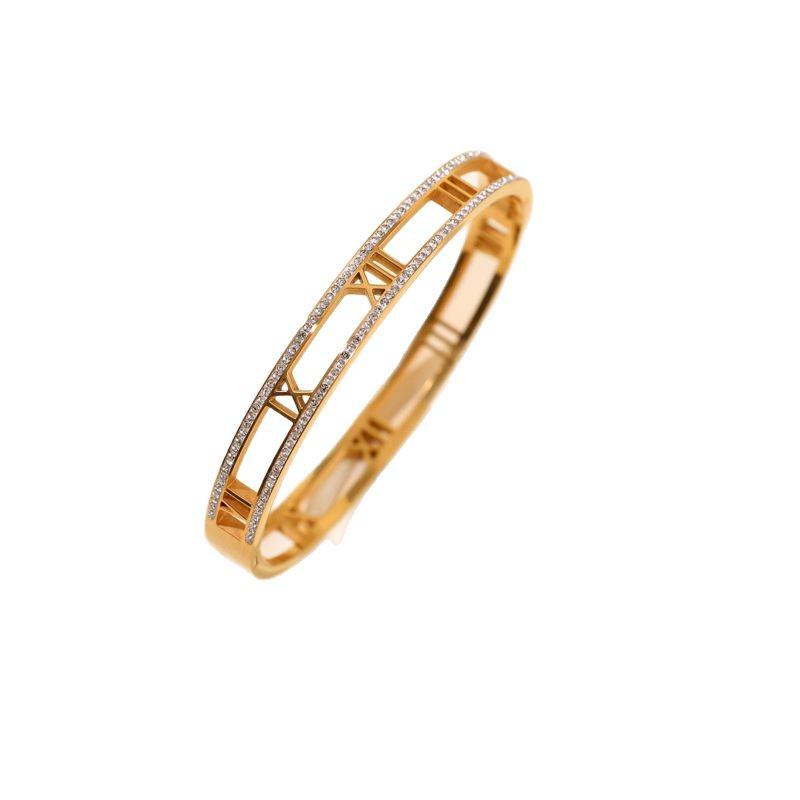 Женский браслет в корейском стиле, простой, из нержавеющей стали, с бриллиантовой инкрустацией и полым титановым замком