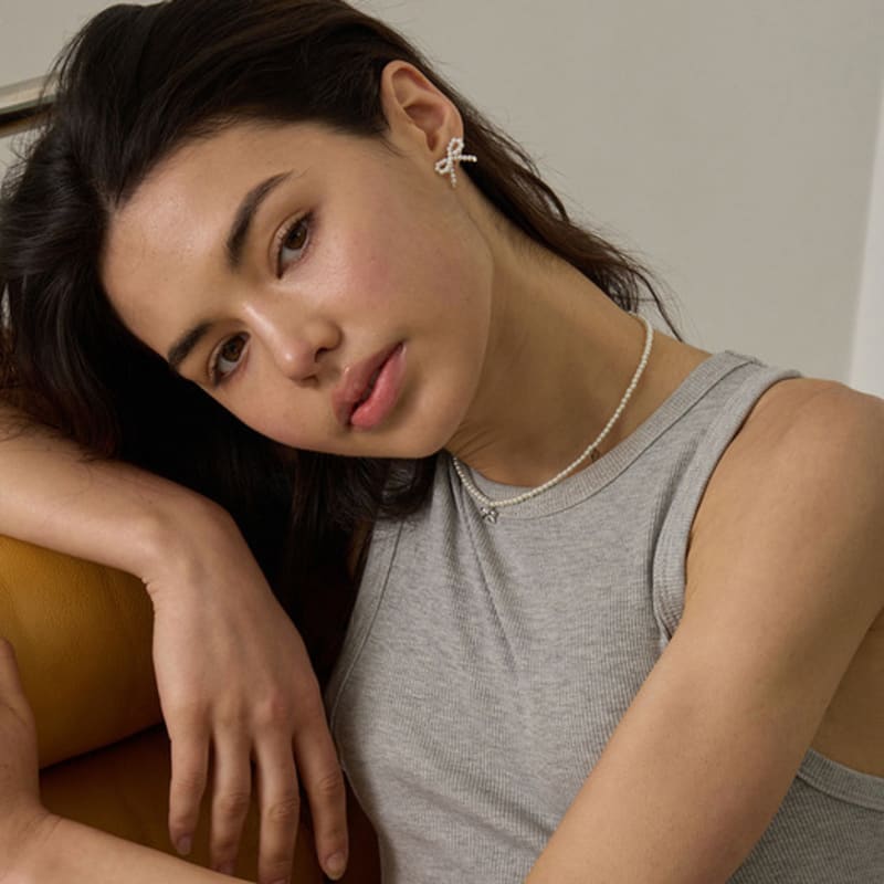 eenie beenie pearl bead ribbon silver earrings ENJ24EW004