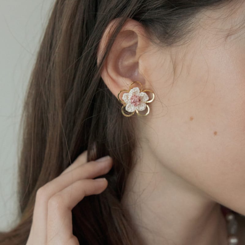 MERRYMOTIVE Double flower knit earring (Gold)