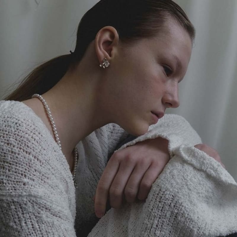 MIDNIGHT MOMENT ribbon wide earring - silver