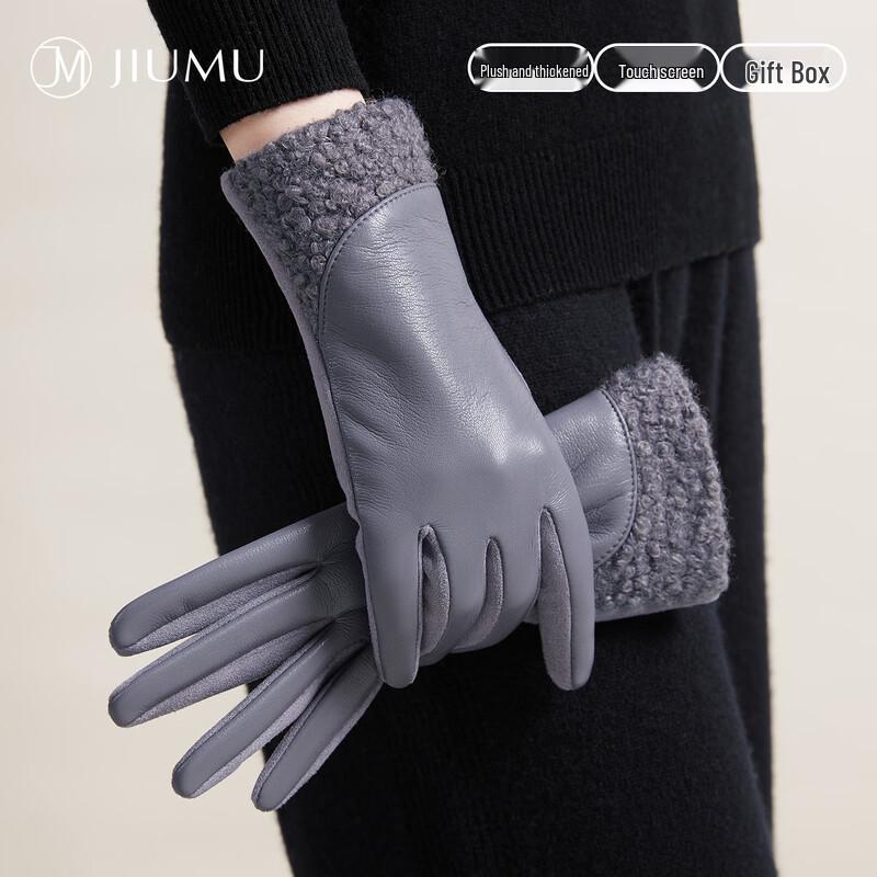 JIUMU Женские зимние флисовые перчатки из ПУ кожи с сенсорным экраном