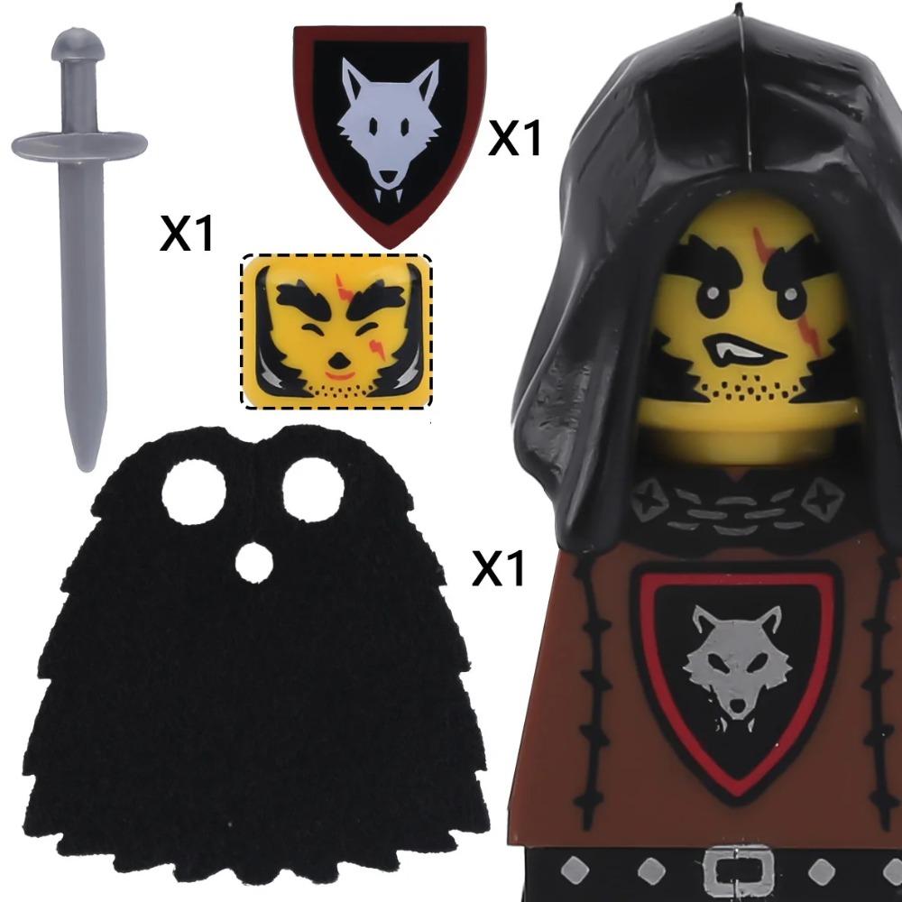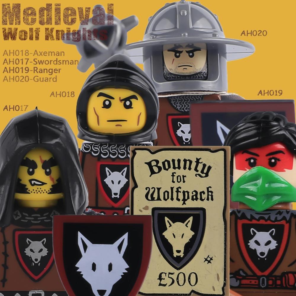 MOC Замок Волк Рыцари Фигурки Строительные блоки Средневековые Военные Солдаты Стража Рейнджер Воин Щиты Плащ Оружие Кирпичики Игрушки
