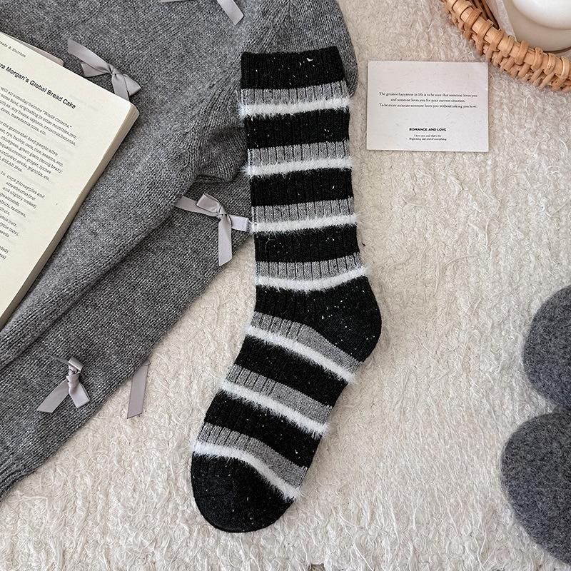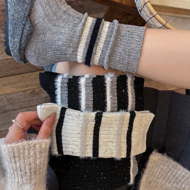 Серые шерстяные носки, осенне-зимние носки, женские носки до середины икры, бесшовные носки, теплые утолщенные полосатые носки-гольфы