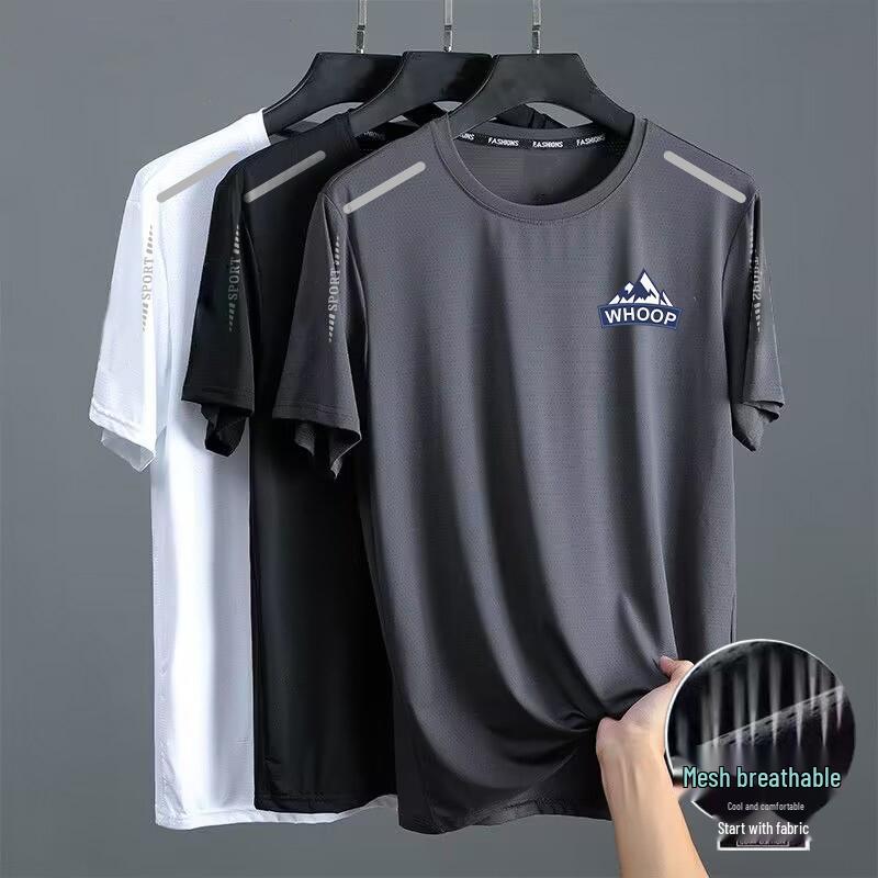 Мужская футболка с коротким рукавом из ледяного шелка в корейском стиле - Удобная, Универсальная, Повседневная, Свободного кроя, Большого размера, Дышащая, Модная летняя одежда.
