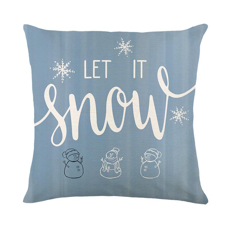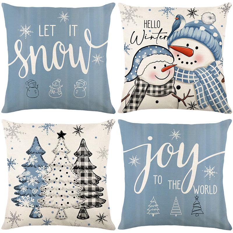 Синяя Рождественская Наволочка Рождественский Снеговик Принт с Буквами Наволочка для Подушки на Диван в Гостиную Наволочка для Подушки у Кровати в Спальне