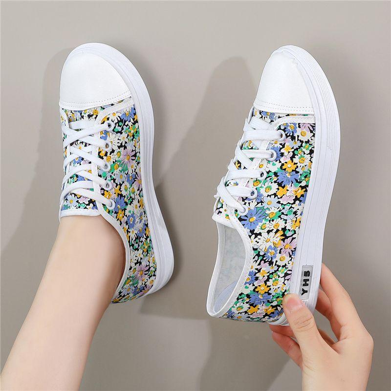 Летняя Легкая Женская Обувь Повседневная Оригинальная Корейская Вулканизированная Обувь Предложение 39 Шнуровка Цветы Холщовые Туфли для Женщин