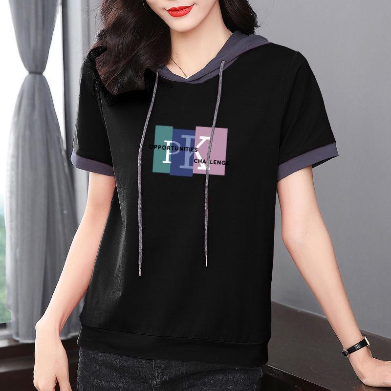 Women's 100% Cotton Hooded Short Sleeve Slimming Korean-Style Summer Sweatshirt (2024)