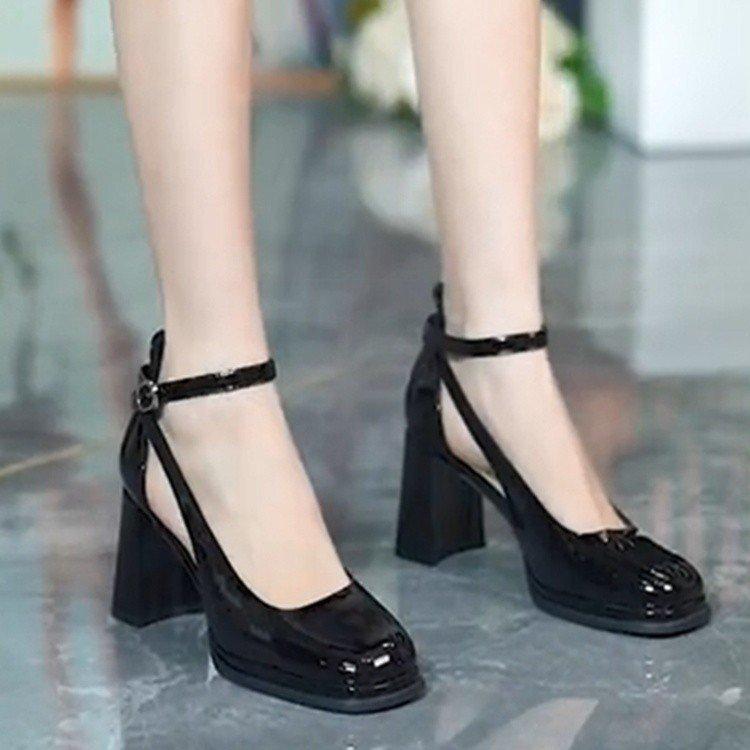 Туфли на толстом каблуке, корейская версия, модные маленькие кожаные туфли, лето 2025, новые рабочие туфли с круглым носком, женские сандалии с круглым носком