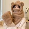 Новый милый набор шапка с медвежьими ушками, шарф и перчатки, зимние женские шапки-бини, теплые повседневные плюшевые шапки, повседневные однотонные флисовые, для девочки, каваи, подарок, EMA