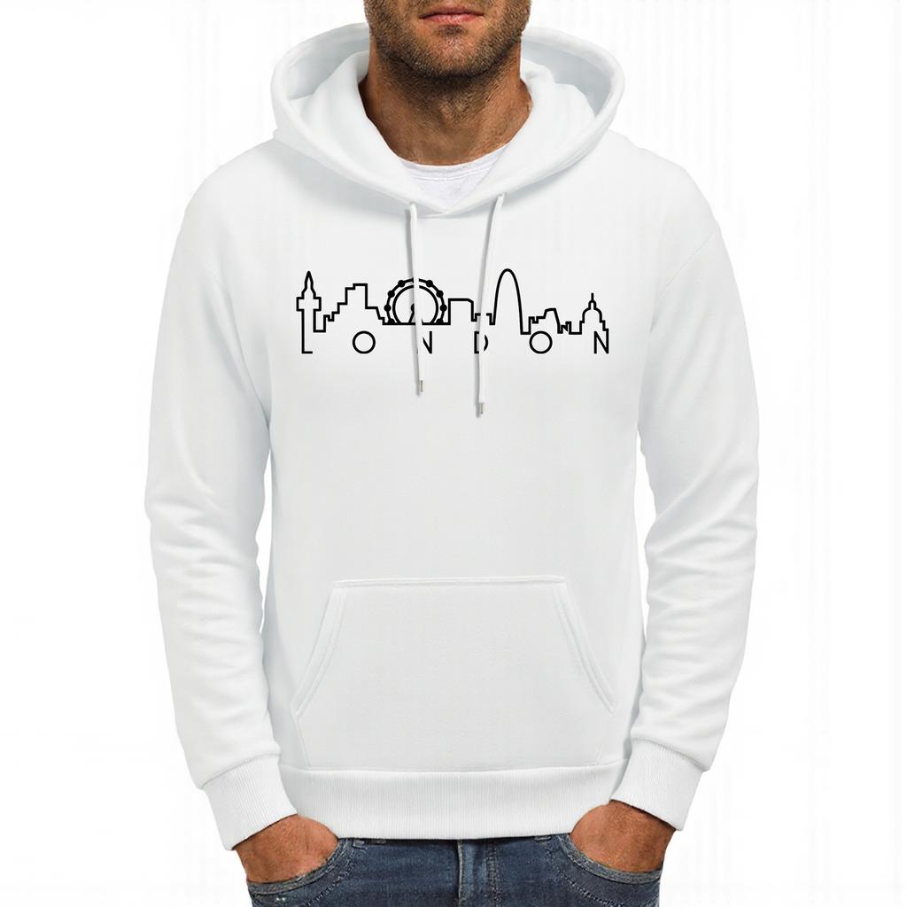 London Line Drawing Printing Men Hoody Autumn Loose Hoodies Casual Fleece Sportswear All-Match Comfortable Male Pullovers