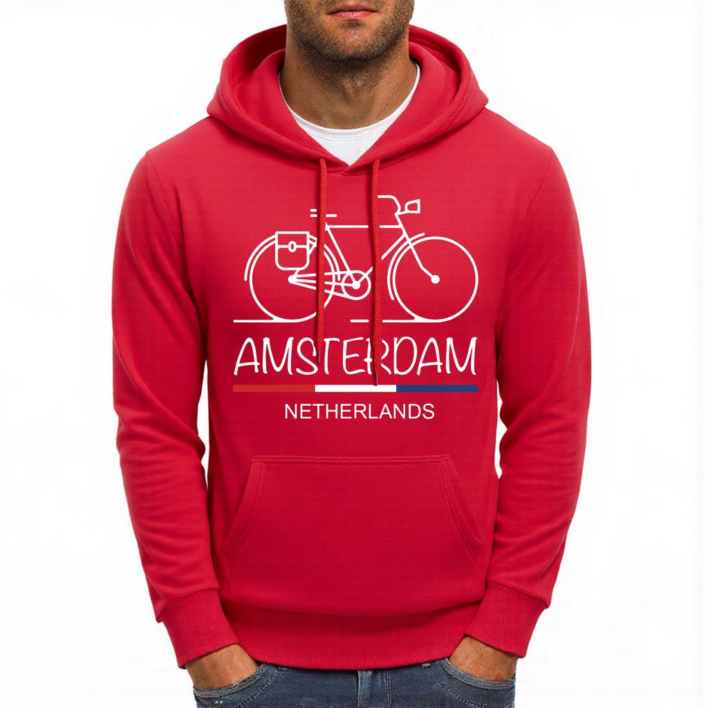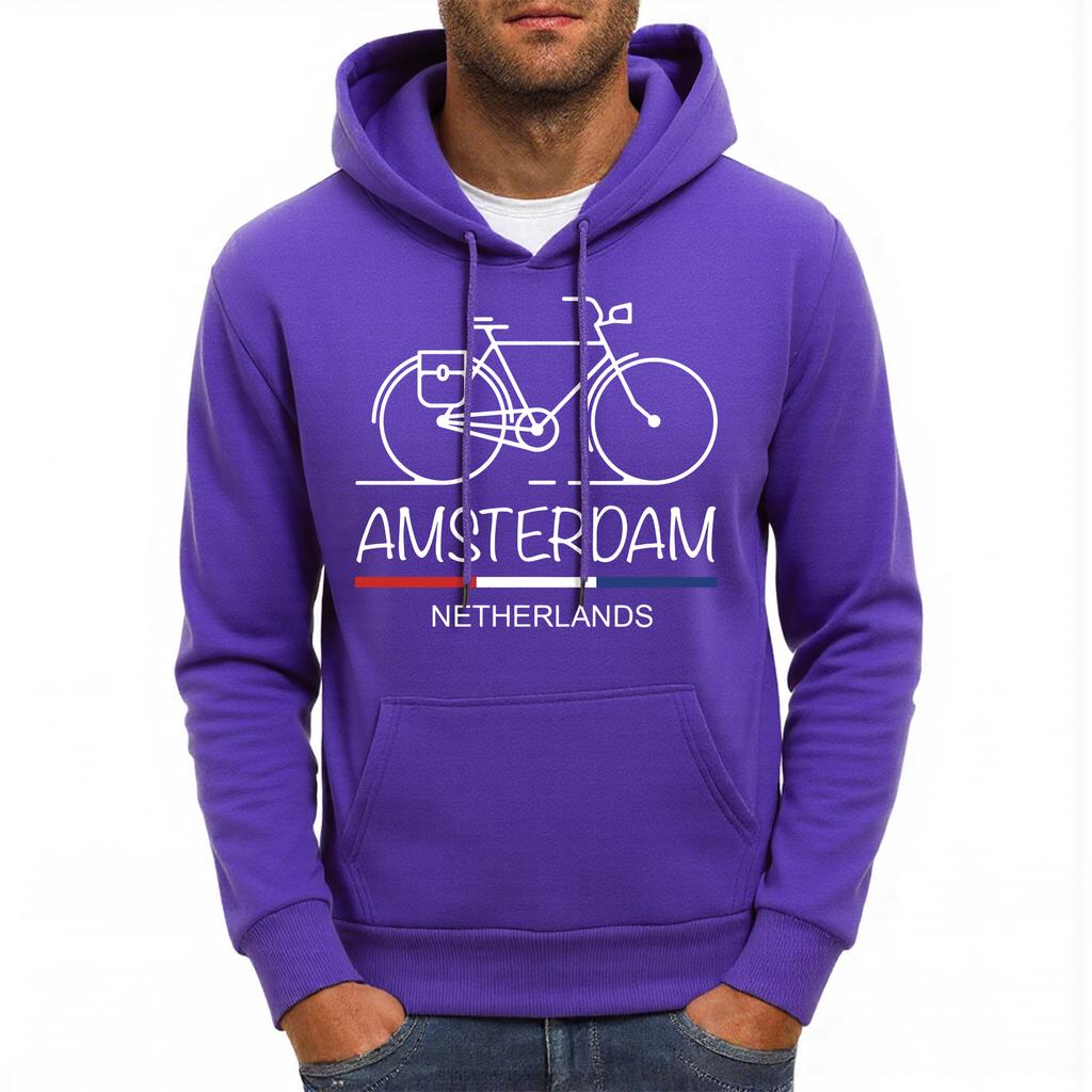 Амстердам Нидерланды Велосипедный принт Мужская толстовка Флис Мягкая худи Повседневный Разноцветный пуловер Удобная Свободная Уличная одежда