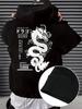 Men's Geometric Dragon Pattern Plush Hoodie Couple Casual Pullover Sweatshirt